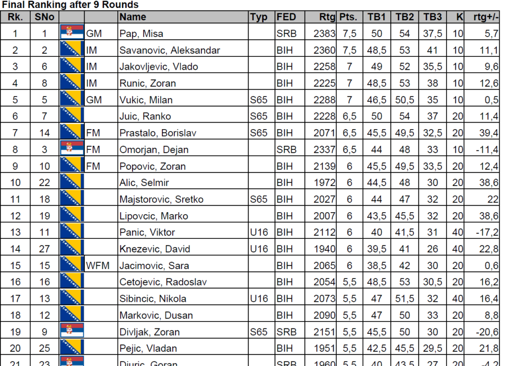 Naš član IM Aleksandar Savanović podijelio je prvo mjesto na 10. blitz turniru GAMBIT 2026. tabela i rezultati dostupni su na: https://s1.chess-results.com/tnr1364705.aspx?lan=1&SNode=S0